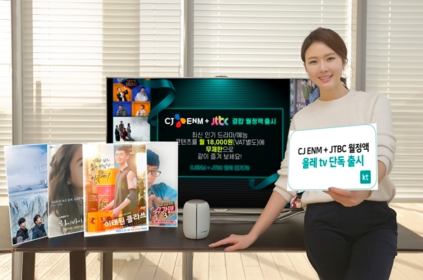 KT '올레tv', CJ ENM·JTBC 월정액 결합상품 출시