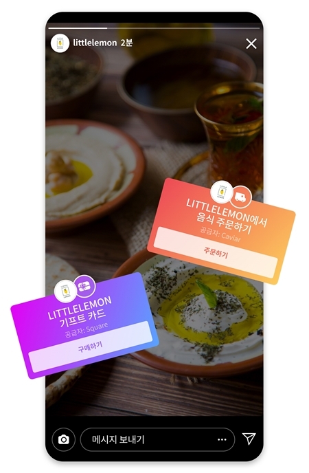 요식업계 소상공인들을 위해서는 인스타그램 플랫폼 내에서 음식을 배달 주문할 수 있는 ‘음식 주문’ 기능이 마련됐다. 인스타그램 이용자들이 요식업 사업자의 스토리에 게시된 ‘음식 주문’ 스티커를 클릭하면, 배달의민족과 요기요에 입점한 해당 음식점의 사업자 페이지로 바로 연결돼 쉽게 음식을 주문할 수 있다.