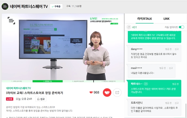 이미지 확대보기30일 네이버에 따르면, 소상공인과 창작자 성장을 교육과 컨설팅으로 지원하는 오프라인 공간 네이버 파트너스퀘어는 지난 3월부터 네이버TV의 '파트너스퀘어TV' 채널을 통해 소상공인 대상 온라인 라이브 교육을 시작했다. 현재 오프라인 강의가 중단된 상황이라 내놓은 대안이다. 현재 총 누적 120회의 교육을 진행했다. 강의 영상의 누적 재생 수는 100만을 넘었다고 네이버 측은 밝혔다. 교육 프로그램의 실시간 재생 수는 누적 66만, 라이브 영상을 다시 보는 재생 수도 38만에 육박했다.