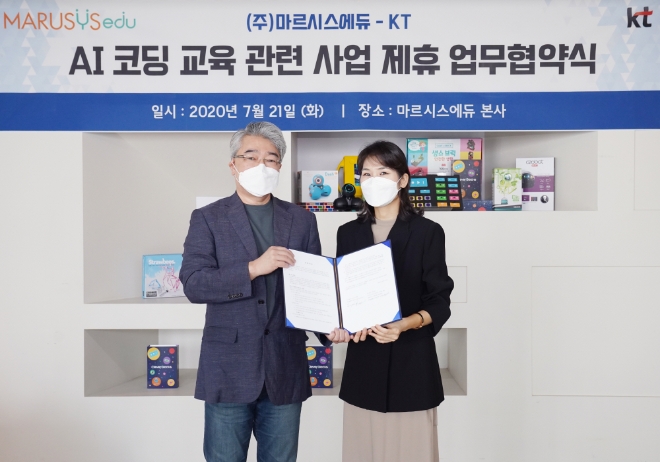 이미지 확대보기KT는 코딩 교육전문기업 마르시스에듀와 서울 강남구 마르시스에듀 본사에서 '인공지능(AI) 코딩 교육 사업 활성화를 위한 업무협약(MOU)'을 체결했다고 21일 발표했다.