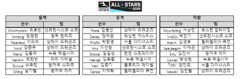이미지 확대보기블리자드 엔터테인먼트가 21일 아시아 및 북미 지역에서 각각 온라인으로 치러지는 ‘오버워치 리그 2020 올스타전’에 출전할 선수 명단 및 세부 프로그램이 공식 발표했다.