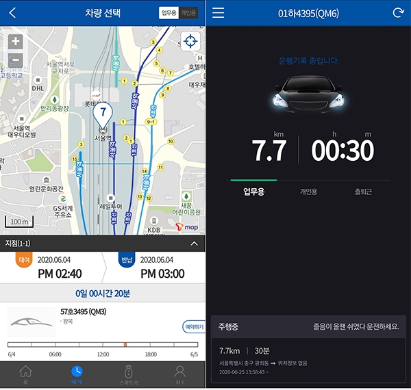 스마트폰 하나로 법인차량 예약부터 주행기록, 카셰어링까지