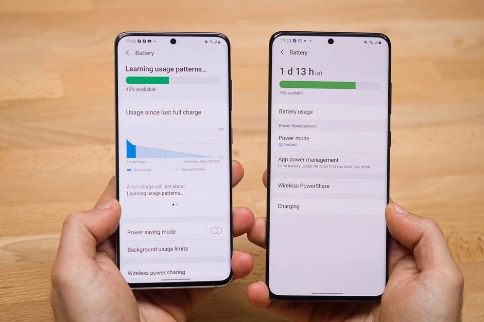 배터리 통계는 최신 안드로이드 기기에서 설정 아래에 제공된다. 사용 주기 및 충전 시간을 파악하는 사용자 지정 UI의 일부다.