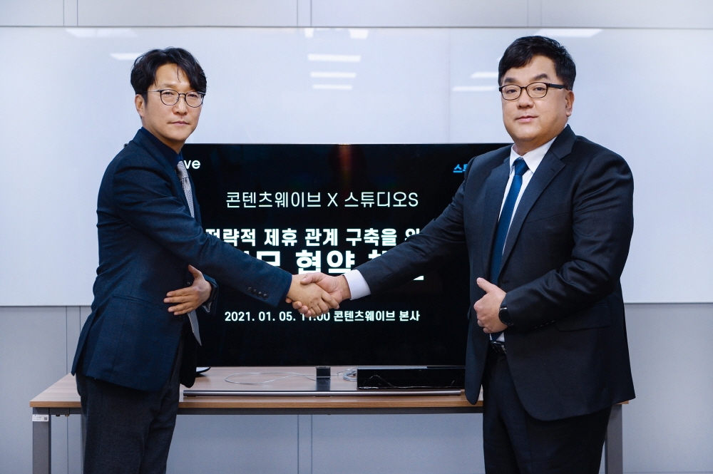 이날 서울 마포구에 위치한 콘텐츠웨이브 본사에서 진행된 이번 협약은 이태현 콘텐츠웨이브 대표, 한정환 스튜디오S 대표 등 각 사 임직원들이 참석해 체결했다.