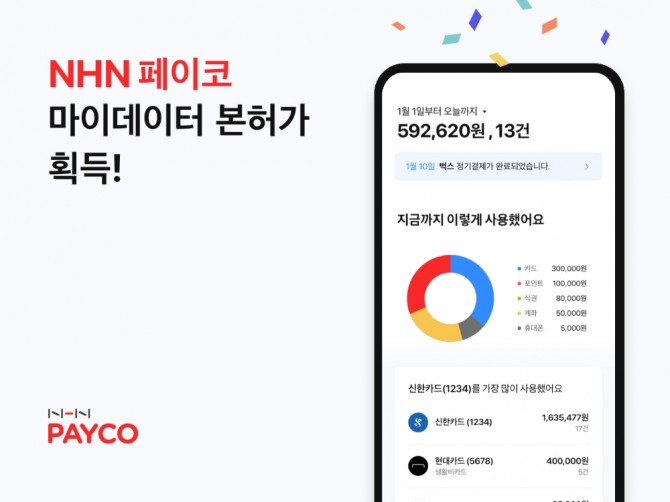 이미지 확대보기NHN페이코는 지난 27일 열린 금융위원회 정례회의에서 마이데이터 본허가를 획득했다. 앞서 NHN페이코는 2019년 과학기술정보통신부의 ‘마이데이터 실증 서비스 지원 사업’에 유일한 금융 분야 사업자로 참여해 ‘페이코(PAYCO) 마이데이터’ 서비스를 선보인 바 있으며, 이번 허가를 발판으로 서비스 전개에 더욱 박차를 가한다는 계획이다.
