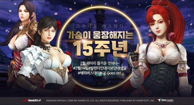 10일 한빛소프트에 따르면 그라나도 에스파다는 오는 25일까지 '가슴이 웅장해지는 15주년 개척일지' 이벤트를 통해 캐릭터의 모든 능력치를 상승시켜주는 '15주년 훈장'을 비롯해 매일 특별한 보상을 총 열흘간 제공한다. 유저들은 게임에 접속해 리볼도외 마을의 NPC와 대화해 개척일지를 받고 이를 사용해 보상을 수령할 수 있다.