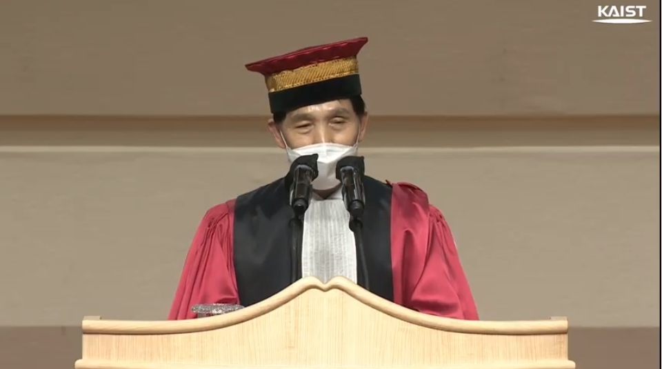 또 SBS 드라마 '카이스트'에서 이 총장을 모델로 한 '괴짜 교수' 캐릭터를 만들었던 송지나 작가와 제자인 김영달 아이디스 회장 등도 취임식에 참석해 취임 축하 인사를 전하는 한편 재학생·동문·교직원 등으로 구성된 50인의 온라인 참석자들이 신임 총장에게 바라는 메시지와 기대감을 화면을 통해 전달했다.