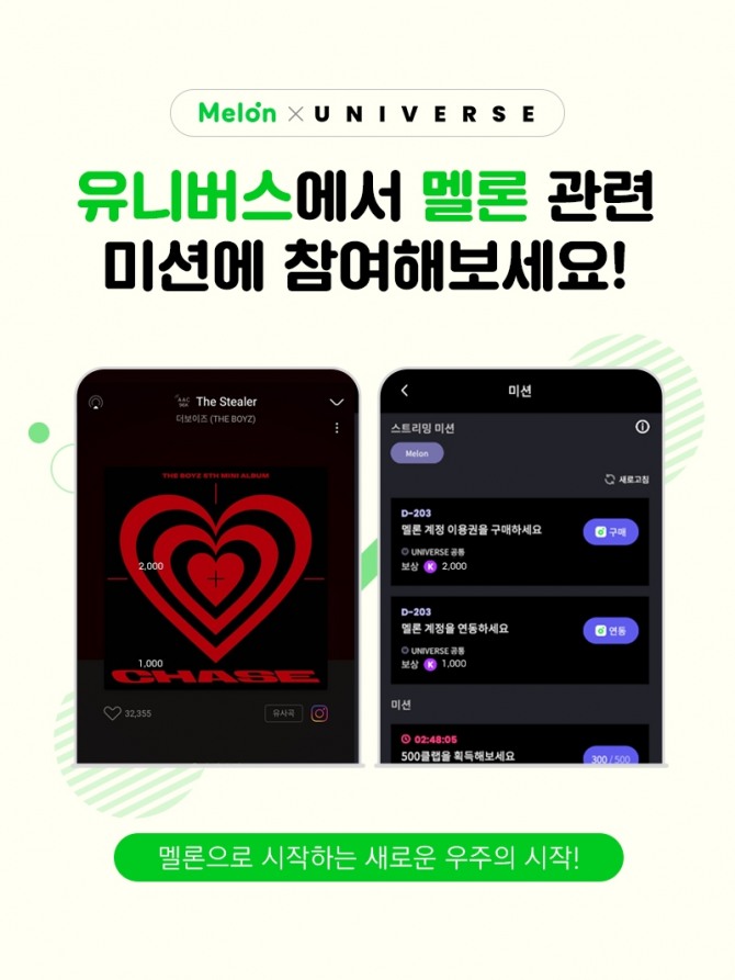 카카오의 뮤직플랫폼 멜론과 엔씨소프트의 엔터테인먼트 플랫폼 유니버스는 플랫폼 연동을 시작한다고 1일 밝혔다.