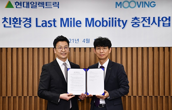 이미지 확대보기e-모빌리티 공유 플랫폼 스타트업 무빙은 현대일렉트릭과 친환경 모빌리티 인프라 구축을 위한 업무협약을 체결했다고 15일 밝혔다.