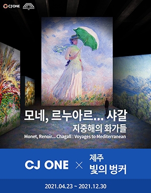 CJ올리브네트웍스(대표 차인혁)의 통합 멤버십 서비스 CJ ONE이 VIP 회원들에게 제주도에서 열리는 '빛의 벙커' 전시 할인 혜택을 제공한다고 23일 밝혔다.빛의 벙커는 프랑스 몰입형 미디어아트 전시관으로, 이날 제주 성산에서 '모네, 르누아르…샤갈'展이 개막했다.