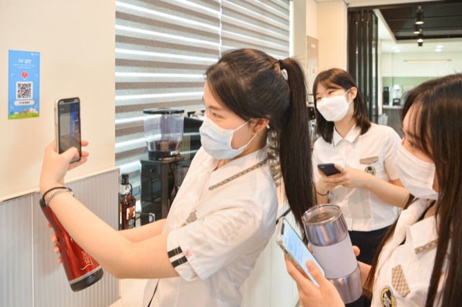 완산여고 학생 250여명과 교직원들은 3일 오픈한 '행가래 앱(완산여고)'을 다운받아 ▲머그컵∙텀블러 쓰기 ▲학생식당 잔반 남기지 않기 ▲교실 미사용 전기 끄기 등 환경 보호에 도움이 될 교내 활동을 하고 포인트를 모을 수 있다. 학생들은 학우 상호 존중에 기반한 행복한 면학 분위기 조성을 위해 수업자료 공유하기와 같은 아이디어도 학생회 활동을 통해 직접 고안했다.