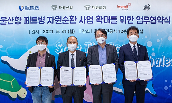 이미지 확대보기태광산업과 대한화섬은 울산항만공사(사장 고상환), 사회적기업 우시산(대표 변의현), 유니폼 제작업체인 형지엘리트(대표 최병오)와 다자 간 업무협약(MOU)을 체결했다고 1일 밝혔다.
