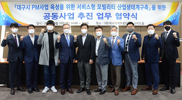 이미지 확대보기이번 협약으로 현대케피코, 대구기계부품연구원, E3모빌리티, 파킹클라우드(아이파킹), 메쉬코리아(부릉), 풍산시스템, 에임스, 삼보모터스, 고아정공, 현대일렉트릭 앤 에너지시스템 등 컨소시엄 참가기관들은 제조 산업 육성 및 배터리 재활용 솔루션을 포함한 서비스형 모빌리티 산업생태계를 구축하는데 상호 협력하기로 했다.