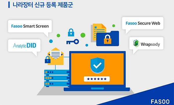 나라장터에 새롭게 등록된 파수 제품군은 ▲화면 보안 솔루션 '파수 스마트 스크린 v.5.0' ▲개인정보 비식별화 솔루션 '애널리틱디아이디 3' ▲문서관리 솔루션 '랩소디 5.0' ▲웹콘텐츠 보안 솔루션 '파수 시큐어 웹 v4.0이다.