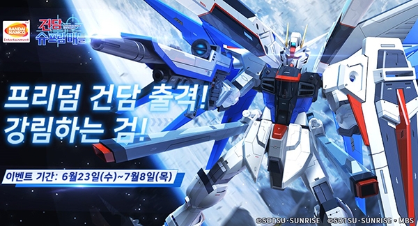 반다이남코 엔터테인먼트(대표 미야카와 야스오)는 자사가 서비스하는 모바일 액션 배틀 게임 '건담 슈프림 배틀'에 신규 기체 '프리덤 건담'을 추가했다고 2일 밝혔다.국내 정식 출시 후 첫 에이스 기체로 등장한 '프리덤 건담'은 강력한 등부의 플라즈마포, 허리의 레일건, 빔 건 등을 이용한 중거리 공격을 구사한다.
