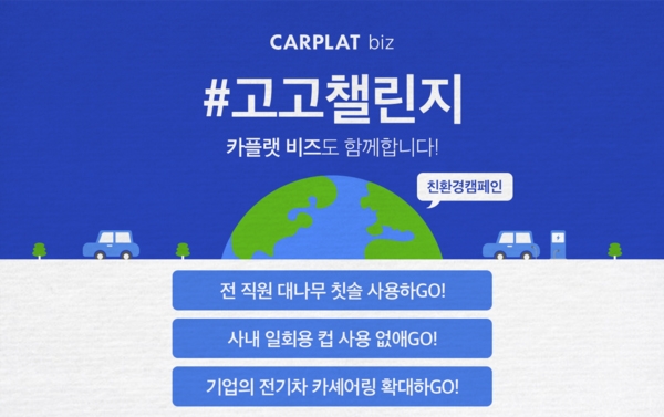 휴맥스 모빌리티(공동대표 오영현)의 친환경 기업 카셰어링 브랜드 '카플랫 비즈'가 생활 속 플라스틱 줄이기 실천 운동인 '고고챌린지'에 동참한다고 23일 밝혔다.고고챌린지는 환경부 주관으로 올해 1월부터 활발하게 이어져온 친환경 릴레이 캠페인으로, 탈 플라스틱을 위해 '해야할 일'과 '하지 말아야 할 일'을 약속하고 후속 주자를 지목하는 방식으로 진행된다.