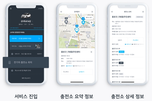 전기차 충전소 검색 서비스 앱 이미지.