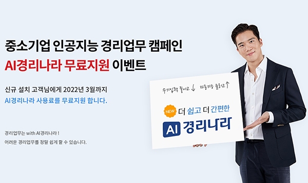 AI경리나라 무료 지원 이벤트는 12월부터 내년 3월까지 신규 설치 고객을 대상으로 실시된다. 해당 기간 내 AI경리나라를 설치한 기업은 내년 3월까지 무료로 이용할 수 있다.