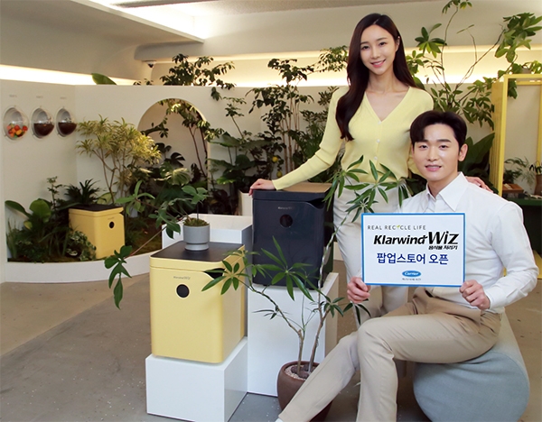 캐리어에어컨(회장 강성희)이 클라윈드 위즈 팝업스토어인 '클라윈드 위즈-리얼 리사이클 라이프'를 7일부터 두 달동안 서울 강남구 세로수길에서 선보인다.이번 팝업스토어에서 클라윈드 위즈의 자연 발효 분해 기술로 음식물 쓰레기를 퇴비화하는 친환경적 방식을 통해 환경을 보호하는 구조를 선보인다. 친환경 콘셉트의 '가드닝' 공간을 조성해 방문객들이 클라윈드 위즈 제품을 통한 리사이클 라이프를 경험할 수 있는 것이다.