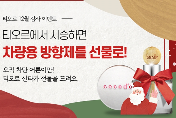 기간 내 티오르를 통해 시승을 예약하고 완료한 후 알림톡에 간단 리뷰를 작성하면 자동으로 응모되며, 이벤트에 참여한 고객 100%에게 차량용 방향제를 선물로 제공한다.