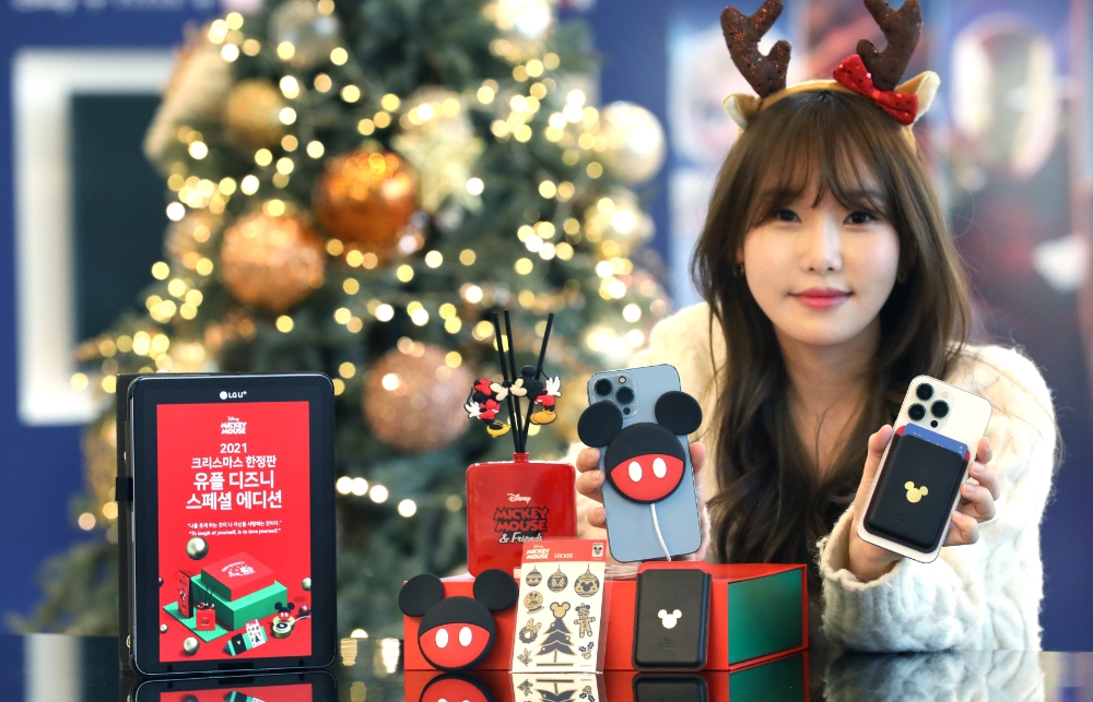 이미지 확대보기유플 디즈니 스페셜 에디션은 LG유플러스와 디즈니의 콜라보 제품으로, 시중에서 구매할 수 없는 디자인으로 제작됐다. 유플 디즈니 크리스마스 에디션에는 맥세이프 충전기·미키마우스 실리콘커버, 미키마우스 맥세이프 카드지갑, 미키마우스 데코 스티커, 미키마우스 디퓨저가 들어있다.