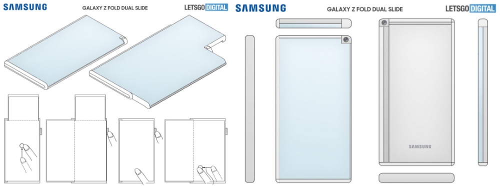 갤럭시Z폴드 듀얼 슬라이드라는 이름으로 등장한 이 특허는 접힌 상태에서는 평범한 스마트폰이지만 펼치면 가로면과 세로면에서 각각 디스플레이가 밀려 올라오는 형태다.