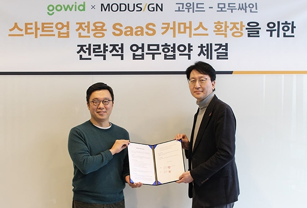 전자계약 서비스 기업 모두싸인(대표 이영준)이 B2B 핀테크 기업 고위드(대표 김항기)와 '스타트업 전용 SaaS 커머스 확장을 위한 업무협약’을 체결했다고 19일 밝혔다.