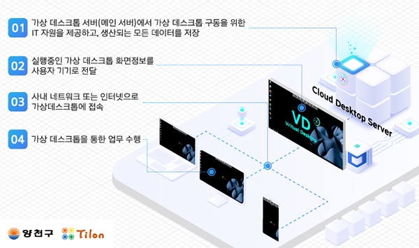 틸론(대표 최백준)은 양천구에 틸론 VDI 솔루션 '디스테이션(Dstation) v9.0'을 기반으로 재택근무 지원 시스템을 구축해 100명의 사용자에게 서비스를 제공할 예정이라고 28일 밝혔다. 코로나-19 팬데믹 상황으로 비대면 업무 환경이 확산됐지만, 기존에 사용하는 VPN(원격근무방식)의 경우에는 원격 근무자가 PC나 노트북의 자료가 유출되지 않도록 보안에 각별히 유의해야 한다. 또한, 이용자 수가 몰릴 경우에는 접속 장애가 발생할 수 있다.