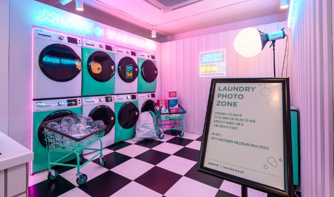 프리미엄 셀프빨래방으로 인기를 얻고 있는 워시엔조이는 '세탁'이라는 연결고리를 통해 이번 팝업스토어 기획에 참여했다. 양사 협업을 통해 '런드리 샵' 컨셉의 공간을 완성하고, 빨래방을 연상시키는 포토존도 마련했다.