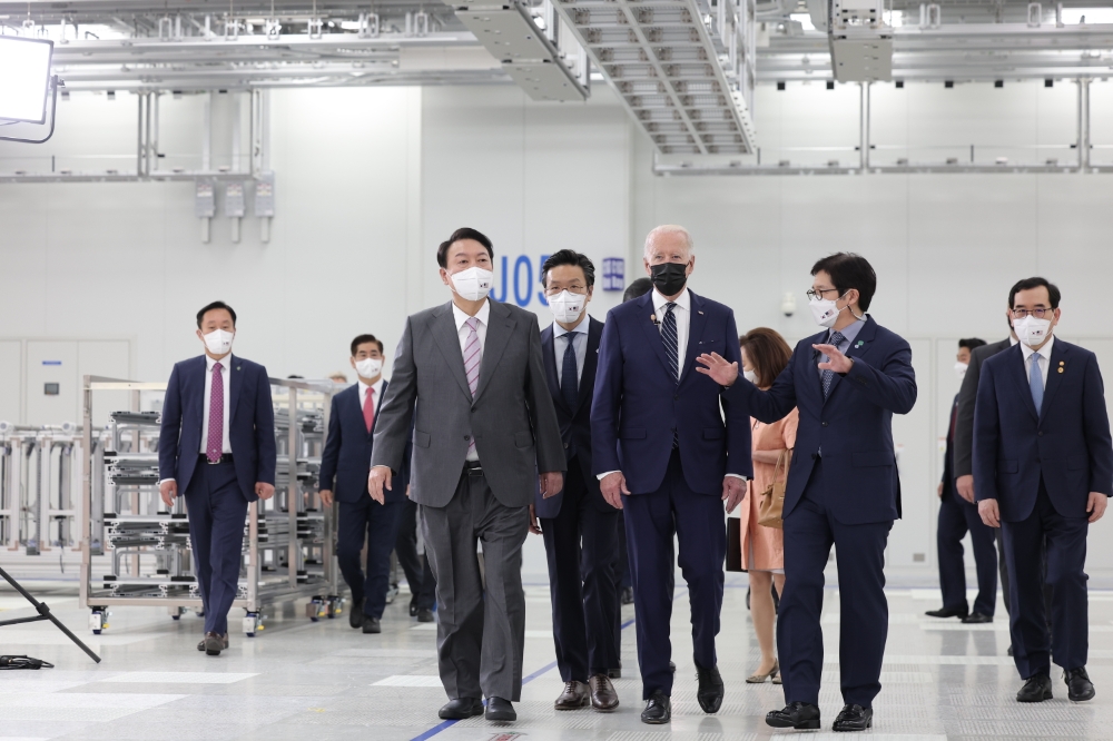 이미지 확대보기앞서 조 바이든 미국 대통령은 한국을 방문해 윤석열 대통령과 20일 경기도 평택에 위치한 삼성전자 반도체 공장을 찾았다. 바이든 대통령은 삼성전자가 21조원 규모의 파운드리 공장을 미국 텍사스주 테일러시에 짓는 것에 대한 감사의 뜻을 전하기도 했다.