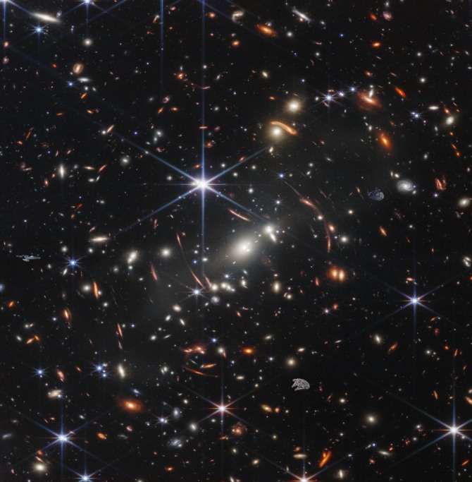 NASA는 "사진 가장 자리에 보이는 빛이 바로 중력렌즈에 의해 증폭되고 휜 것"이라며 "은하보다 훨씬 먼 초기 우주에서 온 빛"이라고 밝혔다. NASA는 우주의 탄생이 138억년 된 것을 고려해 제임스 웹이 135억년 전 초기 우주에서 탄생한 별에서 나온 빛을 관측할 수 있을 것으로 기대하고 있다.