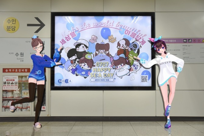 이미지 확대보기유튜브 채널 '세아스토리'는 이날 세아(MK.02)와 김세아(MK.03)가 신분당선 정자역에 걸린 광고판과 함께하며 현실의 인간처럼 포즈를 취하는 인증샷 컨셉의 이미지를 공개했다.