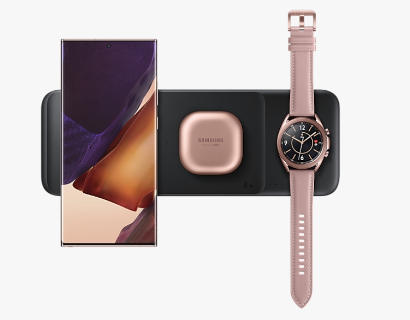 한편, 삼성전자는 지난 2021년 5월 와이어리스 트리오 무선충전패드를 공개하며 3대의 기기를 동시에 충전할 수 있는 충전장치를 선보인바 있다. 무선 충전 트리오안에 7개의 코일을 내장해 갤럭시 스마트폰과 버즈를 6개의 코일을 통해 충전하고 나머지 한 개의 코일을 이용해 갤럭시 워치를 충전할 수 있다. 무선 충전 기능이 있는 애플의 기기는 최대 7.5와트의 고속 충전을 지원하며 삼성전자의 기기는 최대 9와트로 고속충전이 가능하다.