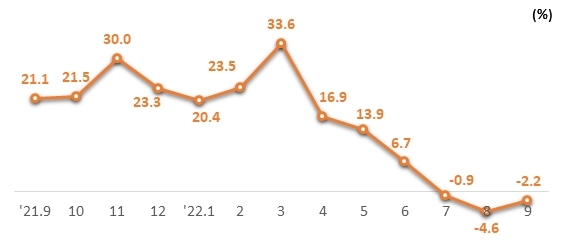 이미지 확대보기14일 과학기술정보통신부에 따르면 9월 ICT 수출액은 208억6000만 달러, 무역수지는 79억4000만 달러 흑자를 기록했다.