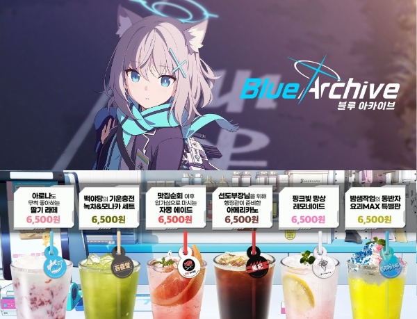 국내 출시 1주년을 기념해 열린 이번 '블루 아카이브' 콜라보 카페는 오는 12월 22일까지 6주간 운영될 예정이다. 카페에선 음료와 케이크 외에도 '특제 시바사키 라멘', '몰?루 아이콘 쿠키' 등을 선보이며 포토카드·엽서북·키 홀더·캔 뱃지·머그컵·배터리·우산·후드 집업 등의 굿즈들을 판매할 예정이다.