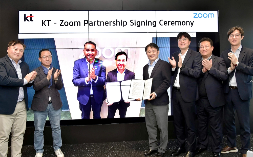 이번 파트너십 체결로 양사는 △줌미팅 국내 시장 확산 △KT 기업 전화 기능의 줌폰 서비스 구상 △KT 유무선 협업 솔루션인 모바일톡 상품 연계 등 KT의 강력한 유무선 통신 역량과 줌의 화상회의 플랫폼을 결합한 통신 DX 상품을 선보일 수 있게 됐다.