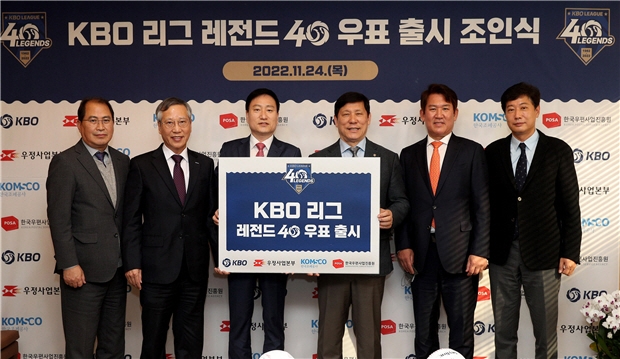 한편 손승현 우정사업본부장과 허구연 KBO 총재, 반장식 한국조폐공사 사장, 민재석 한국우편사업진흥원장 등은 24일 서울 KBO 총재실에서 ‘한국 프로야구 레전드 40인’ 우표 발행을 기념한 조인식을 개최했다.