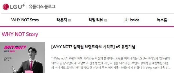 LGU+는 블로그를 통해 자사 제품 리뷰, 임직원과 고객들의 이야기를 담은 '와이 낫?' 시리즈, 업계 전문가들의 상담 솔루션을 담은 월간 연재 시리즈 '저스트 위드 유' 등을 연재 중이다. 유튜브 구독자는 74만명, 인스타그램 구독자는 78만명이다.