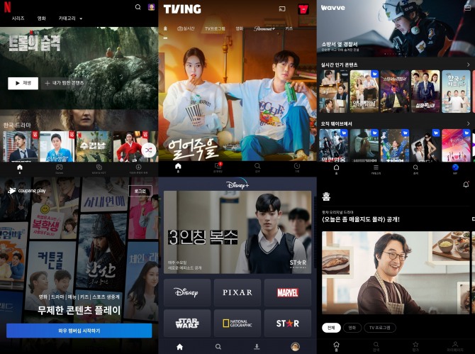 국내 주요 OTT 서비스 메인화면.이미지 확대보기