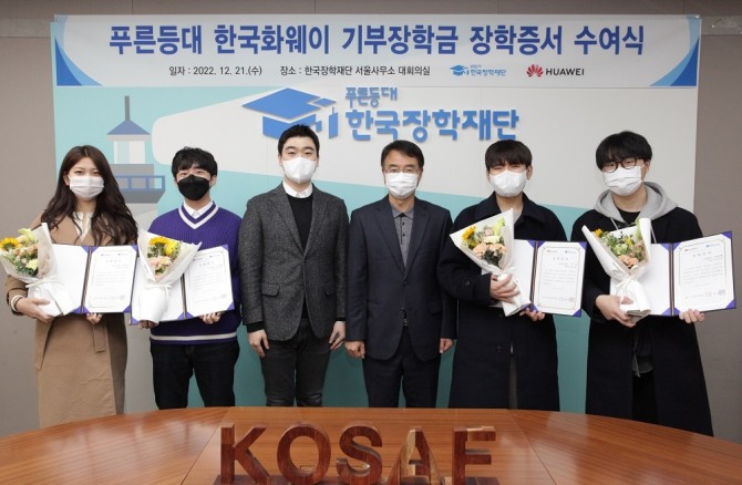 이미지 확대보기한국화웨이와 한국장학재단은 지난 21일 한국장학재단 서울사무소에서 '푸른등대 한국화웨이 기부장학금 장학증서 수여식'을 개최하고 국내 대학에 재학 중인 ICT 전공 우수대학생 20명에게 1인당 150만 원의 생활비 장학금을 지원했다고 28일 밝혔다.