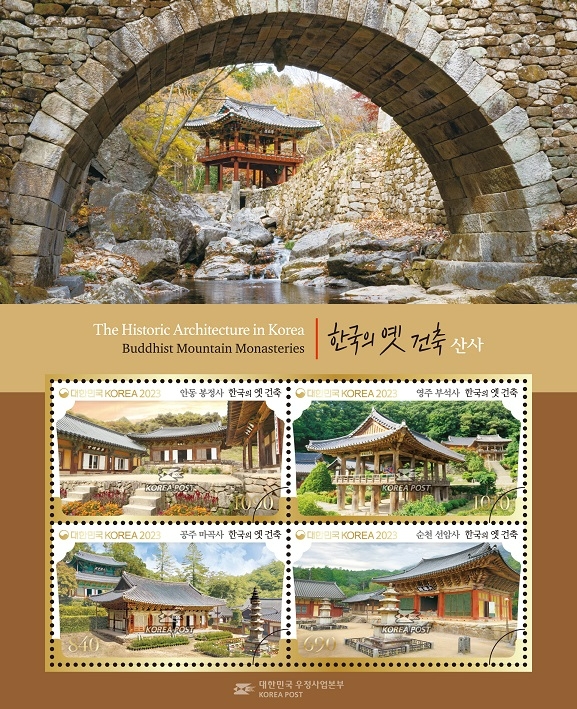 경북 영주시 봉황산에 있는 ‘부석사’는 신라 문무왕 16년(676년) 의상 대사가 왕명을 받들어 지은 사찰이다. 팔작지붕으로 구성된 부석사는 장식적 요소가 적은 주심포 양식의 기본을 잘 따른 대표적인 건물로 꼽힌다. 우표는 범종루와 안양루가 새겨졌다.