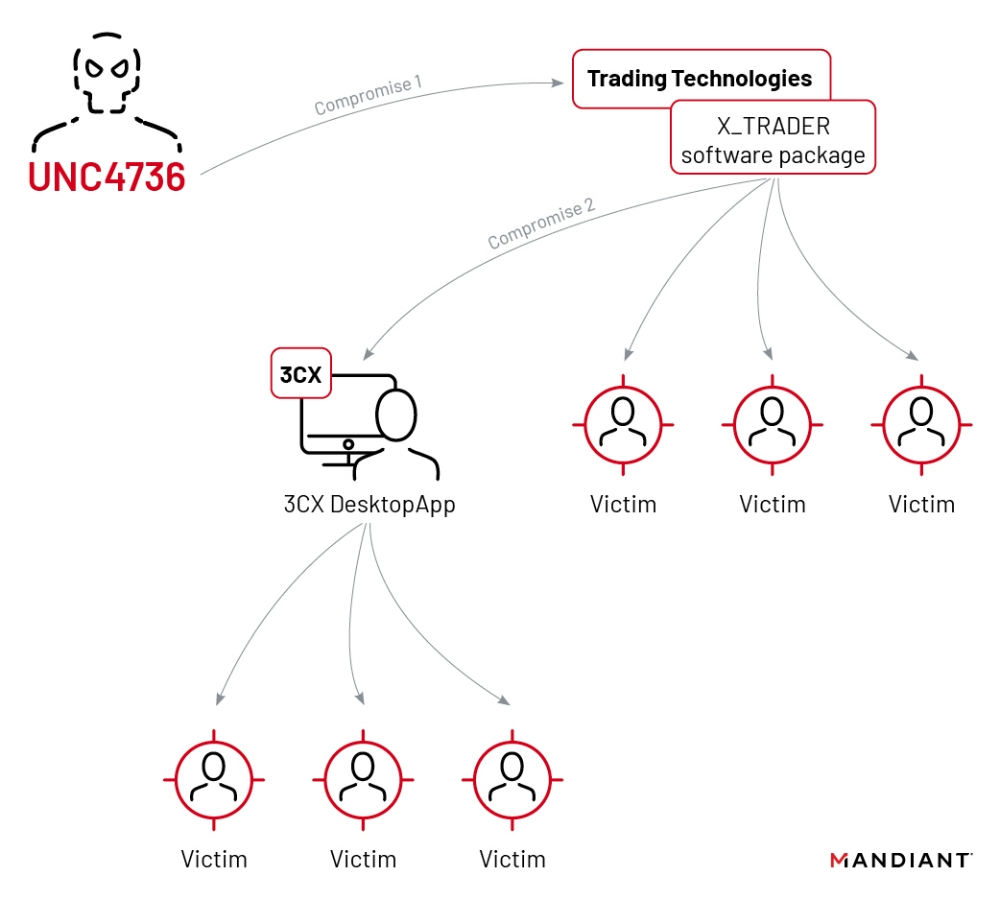 또 다른 사이버 보안 기업 ‘맨디언트’는 최근 보안위협 보고서를 통해 소프트웨어 업체 ‘트레이딩 테크놀로지스(Trading Technologies)’의 소프트웨어가 먼저 악성코드에 감염됐고 이후 북한 해킹조직이 이 감염 경로를 이용해 3CX를 해킹했다고 보고했다.