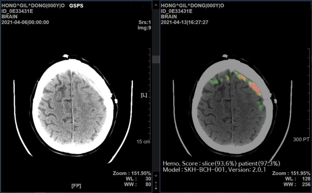 SK㈜ C&C의 메디컬 인사이트 플러스 뇌출혈은 2021년 AI 뇌출혈 진단 의료기기 중 국내 최초로 식품의약품안전처로부터 3등급 의료기기 품목 허가를 받았고 미국 FDA 허가를 위한 임상시험도 진행 중이다.