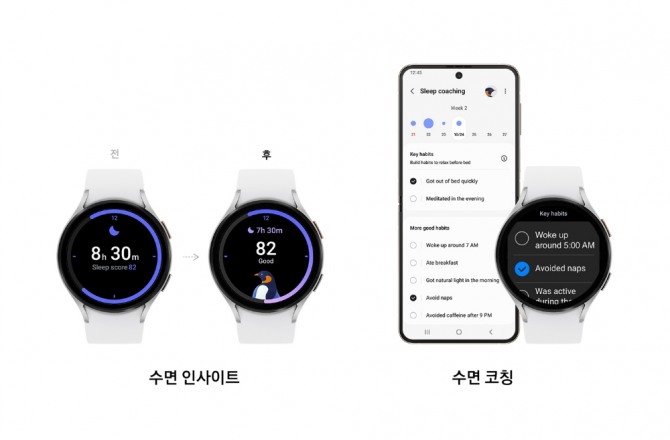 또한, 직관적으로 개선된 '수면 인사이트 UI(User Interface)'는 사용자의 수면 점수를 화면 상단에 배치하여 전날 밤 수면 시간과 수면의 질을 한눈에 보여준다.
