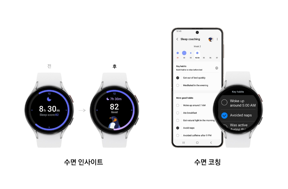이미지 확대보기삼성전자는 사용자의 더 나은 수면을 위해 개인 수면 패턴의 이해, 건강한 습관 형성, 최적화된 수면 환경 조성을 강조해왔다. 이를 기반으로 '원 UI 5 워치'를 통해 수면 관리 기능을 더욱 강화했다.