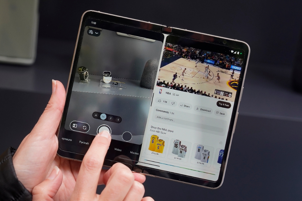 이미지 확대보기구글은 10일(현지시간) 미국 캘리포니아주 마운틴뷰 쇼어라인 앰피시어터에서 열린 연례 개발자 회의(구글 I/O)에서 픽셀 폴드를 공개했다.