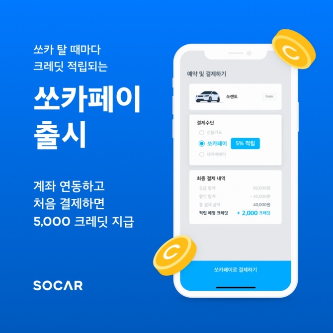 계좌연동 결제시 쏘카 결제금액 5% 크레딧 적립