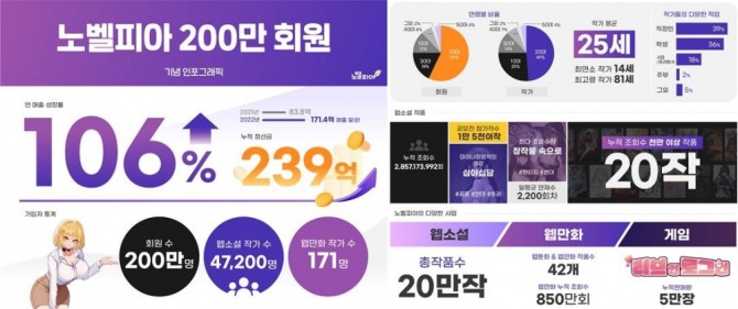 이미지 확대보기사측은 200만 회원 돌파를 기념해 작가들을 위한 정산 이벤트를 시작했다. 오는 12일부터 별도 공지 시점까지 △150회 이상 연재된 완결작에 한해 정산금 25% 추가 적립 △노벨피아 플러스 작품을 대상으로 6개월 단위 재열람 조회수 추가 정산 등이 적용된다.