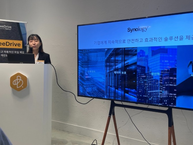 이미지 확대보기8일 열린 기자 간담회에서 셸리 추(Shelly Tsou) 시놀로지 세일즈 매니저는 “최근 개인 사용자들은 스마트폰이나 노트북 등 개인 디바이스를 활용해 많은 양의 데이터를 저장하고 있어 개인이 사용하는 스마트폰의 용량은 매년 기하급수적으로 늘고 있다”고 말했다.