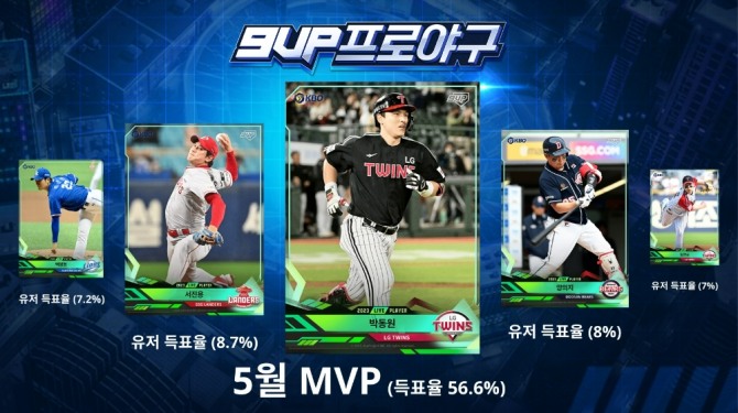 에이스프로젝트 관계자는 "이번 5월 팬 투표에도 많은 선수들이 후보에 올라왔으며, 그중 FA자격을 통해 LG로 이적한 다음부터 잠실 홈런왕으로 거듭난 박동원 선수의 활약이 도드라지며 56%가 넘는 압도적인 결과를 얻어낸 '최애의 선수'로 뽑혔다"며 "프로야구 정규 시즌도 어느덧 중반을 향해가고 있는 만큼 9UP 프로야구에도 이같은 방향성에 맞춰 유저들에게 만족감을 선사할 콘텐츠를 개발하고 제안하도록 노력할 계획"이라고 말했다.